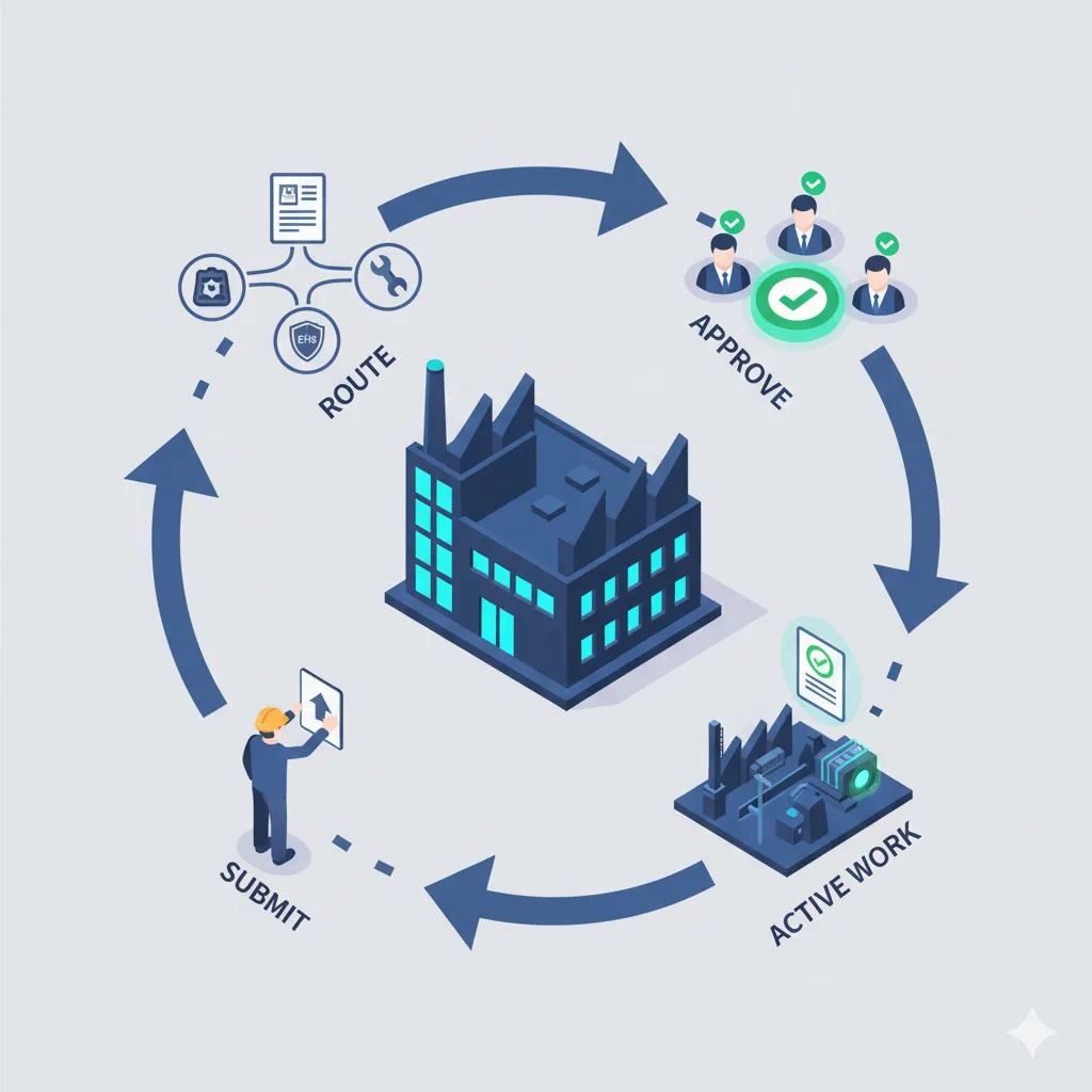 Automatizovan višestepeni postupak odobravanja koji usmerava dozvole za rad kroz timove za Obezbeđenje, Bezbednost i Zdravlje na Radu, Održavanje i Upravu u definisanom redosledu.